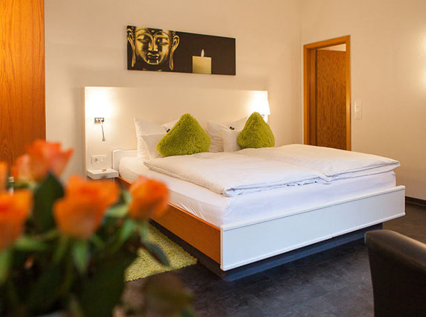 Unsere zwei Wellnesszimmer im Seitenflügel bietet Ihnen jeweils mit eigener Sauna und einmal mit beheiztem Wasserbett Wellness-Feeling vom Feinsten.